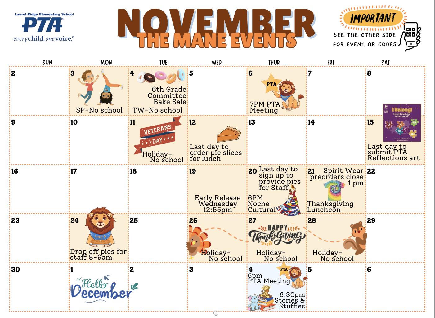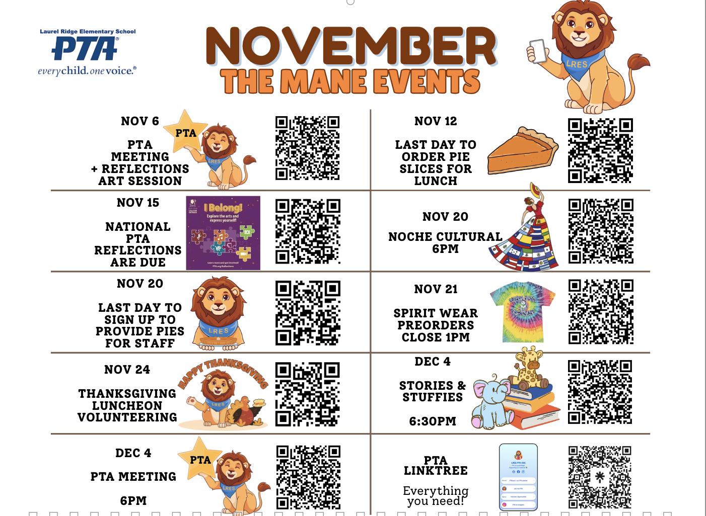 November 2025 Mane Events Calendar